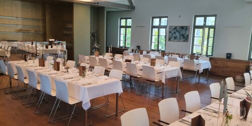 Sie können bei uns je nach Monat und Wetterlage entweder im Sommergarten - unter freiem Himmel, geschützt unter den Kastanienbäumen oder der Pergola - oder den Innenbereichen feiern. Dabei stehen im kleinen Festsaal unter dem Dach Sitzplätze für 36 Personen, im großen Festsaal Plätze für 60 - 70 Personen für ein gesetztes Essen zur Verfügung.